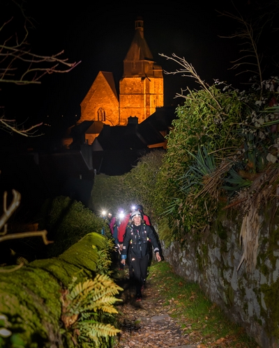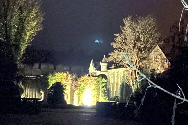 On continue de longer les étangs, puis on passe le long de l'abbaye des Vaux de Cernais, bien éclairée pendant la nuit.
