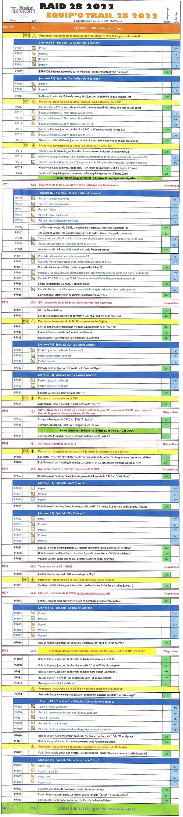 Le PC1 est l'occasion de faire un premier état des lieux. Pour le moment on progresse plutôt bien et on a presque réussi à ne pas passer de temps sur les balises bleues. Tout le monde a trouvé sa place dans l'équipe, bref, ça roule.