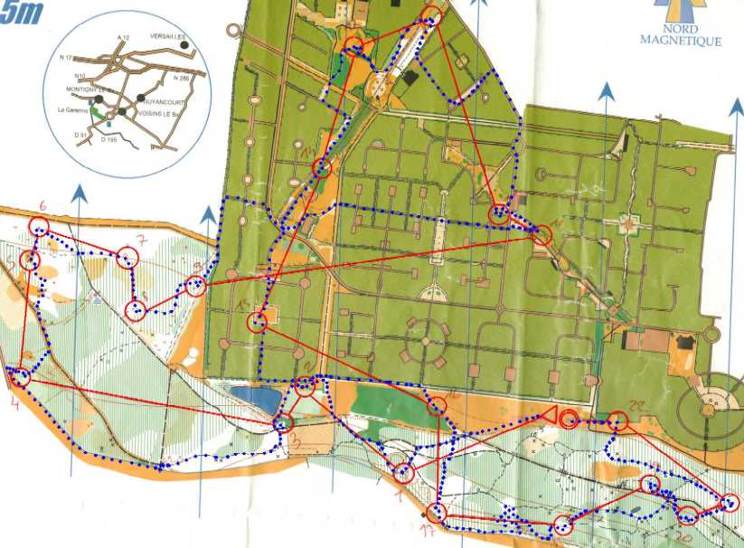 La course est tracée sur la carte du Bois de la Garenne au 1/5000 ce qui oblige à rester très vigilant, car sur ce type de carte les distances sont parcourues très rapidement.