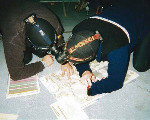 Il y a 27 balises vertes (à pointer sinon pénalité de 30 à 60’ par balise) et 6 PP bleues (optionnelles et apportant entre 30 et 40’ de bonification par balise à l’arrivée). Comme nous avons décidé de faire l’impasse sur les bleues, et pour ne pas être tentés " d’y aller quand même " nous décidons de ne même pas les reporter sur la carte !