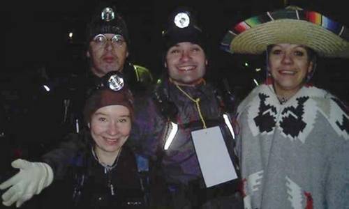 on enfile les sacs à dos et 1 minute plus tard, on est tous les 5 dehors, dans le noir (mais pas trop dans le froid) enfin prêt à conjurer le sort… tin tin tin tin tin tin tin ! ! ! ! !