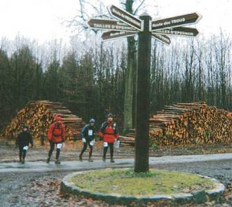 Alors là, pour repartir, nous repartons… toujours vaillant (enfin presque) il nous reste quelques centaines de mètres pour atteindre LE point fatidique ! ! ! On se rapproche tranquillement par un sentier, et sentant l’écurie, on termine en coupant directement à travers la foret pour rejoindre le PC2 que nous apercevons au loin…