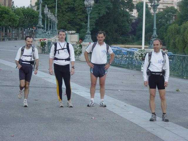 On commence à remonter vers République (oui je sais, on en vient mais c’était vital de passer quand même à La Bastille… Question de principe !), puis on remonte le canal St Martin… On longe tranquillement le Canal jusqu’au environs de La Villette mais sans trop traîner car nous devons récupérer un 5ème élément en la personne d’Enzo. Le rendez-vous est fixé sur les quais du canal, mais juste avant d’arriver sur place la route est bouclée par un Bal des pompiers (ou plutôt ce qu’il en reste !). Toute la largeur de la rue est grillagée. Bon comme le bal est termine, ils vont bien nous laisser rentrer. Pas de soucis, on se fait même encourager par quelques pompiers. Arrivé au bout du bal, là c’est totalement grillagé ! ! ! " Heu, comment on sort m’sieur ? ". " Bougez pas j’vais vous pousser l’grillage " nous réponds un gentil pompier. Enfin gentil tant qu’il reste à la caserne. Je l’imagine en train de partir en intervention pour aller chercher un noyé. Un coup de bouche à bouche et le noyé passe de l’asphyxie au comas éthylique ;-))) Bref, quelques centaines de mètres plus loin nous retrouvons quand même Enzo.