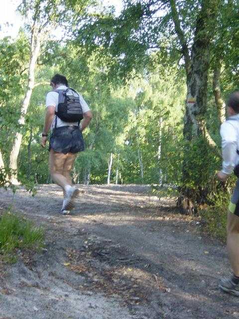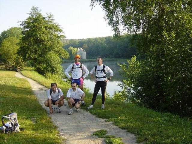 A partir de là on va rentrer sur un secteur en ville qui va être suivi par une longue montée sans fin pour atteindre la forêt de Montmorency ! Dans cette montée j’applique ce que je n’ai pas toujours fait depuis le début de cette sortie, à savoir marcher en côte. En fait depuis le début on a fait pas mal de haltes, mais le rythme de course et la fréquence des arrêts ne sont pas les miens. Je suis, mais je sens que je ne suis pas à mon rythme. Dans cette grande montée de plusieurs km, je décide d’attaquer en marchant. En marchant vite, mais en marchant. Finalement mes équipiers ne me prennent pas tant de distance que ça en trottinant, et ils font une petite pause de temps en temps pour que je puisse les rejoindre. Au bout du compte on arrive enfin à la première grande forêt du parcours. La forêt de Montmorency. Bon, OK, c’est pas tout plat de chez tout plat là dedans… mais pas grave, on quitte enfin le bitume, alors je suis content ! On a fait pratiquement 24 km en 3h, soit 8 de moyenne arrêts compris ! Pas si mal que ça (plus vite que l’UTMB en tous cas ;-)) On enchaîne quelques belles pistes que Ufoot nous fait alterner avec des passages sur des sentiers. Il arrive même à trouver de la boue ! On se demande comment il fait.