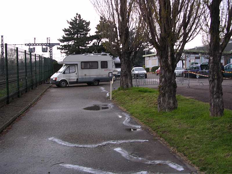 Petite descente sur 2 mètres qui peut être " casse pattes " au fil des heures et on attaque la longue ligne droite sur du bitume le long de la ligne de chemin de fer |