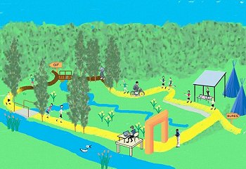 Qu'il est long, qu'il est long ce chemin papa ! Heureusement le sol sans piège nous laisse tout le loisir de regarder les amis qui courent en face le long du bois et sur la jetée.