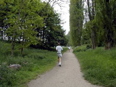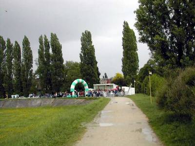 Plein de monde à pied ou à vélo affectionnent l'endroit. Il est donc difficile à franchir. De plus, de tout le circuit, c'est là que le vent d'ouest souffle le plus fort dans le nez des coureurs. On s'autorise juste un coup d'œil de l'autre coté du bassin pour essayer d'y deviner la progression des copains.
