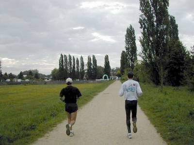 Il faut tourner sec à gauche à la sortie du pont, si on commence le tournant sur les planches, au mieux c'est le grand écart, au pire c'est le plat ventre. La seule technique sûre est alors d'aller tourner plus loin sur le chemin de Gif. Au premier tour, dans la grisaille du petit matin, on a vu des gens rater le tournant et s'égarer du côté de Gif.