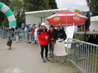 La tribune du contrôleur qui enregistre tous les passages est montée à côté de l'arche. Tel le capitaine à la barre du navire, le contrôleur domine le flot montant des coureurs qui s'écoule lentement en battant les flancs de sa tribune.