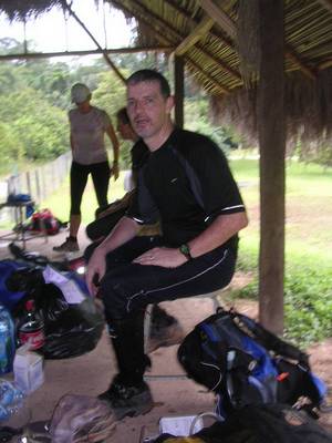 Il nous raconte que lorsqu'il est parti tracer le début de la section en forêt, il s'est perdu pendant une douzaine d'heure, et que, sur la section la plus technique de la course, Remy (un guyanais chargé du traçage et double vainqueur de ce raid par le passé) s'est lui aussi égaré et qu'il aura fallu 2 jours et l'intervention d'un hélico pour le récupérer. Ca fera d'ailleurs un bel article dans la presse locale ! Cette fois ça y est, on est dans le bain.