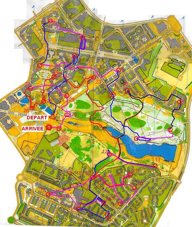 Vous pouvez retrouver la définition des postes, la carte (30 postes) avec mon tracé, ainsi que mon résultat |