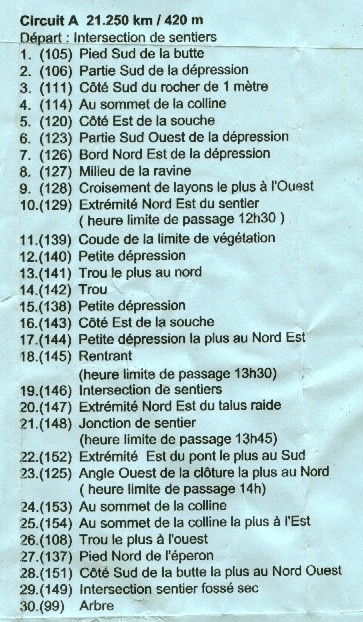 Plusieurs autres circuits sont proposés (entre 8 et 22 km) permettant ainsi aux marcheurs et coureurs de tous niveaux de participer Principal objectif, reprendre contact avec l'orientation en raid (technicité moyenne et postes à postes plus long qu'en CO classique) en vue des raids hivernaux (Extrem Run, Raid 28 et Raid Normand) avec un objectif de terminer si possible entre 4h00 et 4h30. Pour suivre le CR, vous pouvez accéder à la carte (330ko) avec le tracé de la course ainsi qu'aux définitions de postes.Les résultats individuels sont aussi en ligne ainsi que le classement général ! |