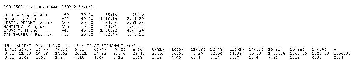 - Ensuite sélectionner "Michel LAURENT" (les coureurs sont classés par temps). Je suis en 1h06'32