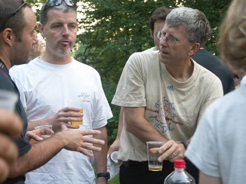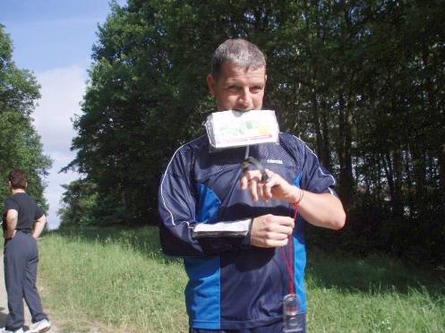 Du coup l’Domi va terminer avec une minute de moins que moi (normal on fait une bonne partie du circuit et on termine ensemble alors qu’il est parti une minute derrière.) Finalement je préfère partir derrière (quitte à remonter comme la semaine dernière avec le Pouic) plutôt que d’avoir la " pression " du coureur qui me remonte) Au final on se retrouve avec des temps de 1h16 et 1h17… Reste à savoir ce que vont faire les autres… L’Pouic va arriver une fois qu’on sera changés et séchés <;-)))))) sa minute de retard au départ ayant fait des petits pendant la course ! (1h56) On va aussi s’assurer que le castor junior rentre bien avant la nuit pour une fois. (1h43) Pas question de le rater pour cette dernière étape… Le Kloug terminera quand à lui en 1h21... Je surveille aussi le temps que va mettre Atomik JF, car avant le départ il était à peine à deux mn de moi au classement du challenge. Finalement il va terminer en 1h40, le danger est écarté Petite surprise aussi en voyant le Mammouth Rose arriver avec une feuille de temps supérieure à la notre… (1h25) Visiblement il commence à prendre au sérieux les séances de jardinage, mais lui quand il jardine, il en profite pour bêcher et passer le motoculteur derrière ;-))). Bref, je pourrai dire à mes petits enfants qu’en 2006, j’ai battu " à la loyale " le Mammouth… Au fait si Orient’a fond cherche un orienteur, je suis dispo ;-))) On va ensuite profiter du pot et de la remise des récompenses pour descendre une petite mousse , un verre de cidre, grignotter un bout de gâteau, regarder la BD faite par Atomik JF sur les 12h de Bures et prendre peur en apprenant qu’ils ont demandé au castor junior d’aller… débaliser le circuit… Ah zut, on est pas prêt de partir alors !!!