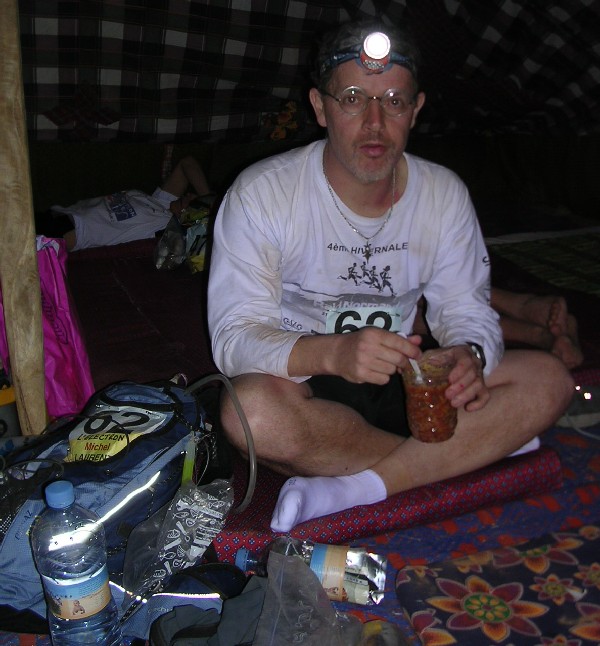L'arrêt à PC4 ne sera pas trop long. Après les traditionnelles phases de ravitaillement en eau, je mange mon plat lyo, ne touche toujours pas aux cacahuètes, et renouvelle mes gels.