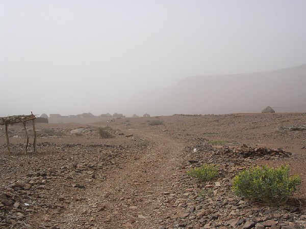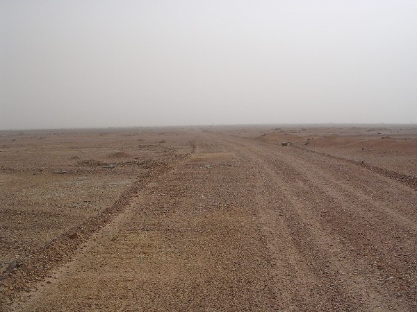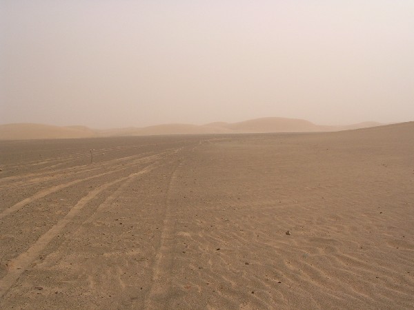Dès ce tronçon le vent se lève emportant avec lui un gros nuage de sable. Par moment ça souffle assez fort, mais on ne s'imagine pas encore ce qui va nous tomber sur le coin de la figure dans quelques heures.