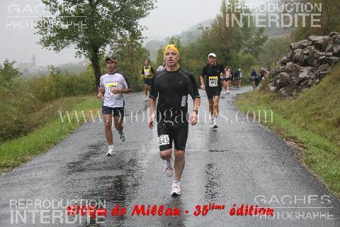 Entre le 30 et le 35ème km, je vais prendre mon premier " coup de bambou ". Gros coup de mou qui me laisse penser pendant un instant que si j’arrive comme ça à Millau, c’est pas la peine de repartir sur la seconde boucle… Malgré tout je réagis assez vite. Je modère encore un peu mon allure, sachant que ce type de période difficile passe toujours, et surtout je me rend compte que je suis pile poil dans le traditionnel " mur des 30 " bien connu des marathoniens Pour arranger le tout, il faut dire que la petite pluie du début s’est transformée en averse puis en véritables seaux d’eau. On patauge joyeusement par moments, et heureusement que la température clémente m’évite d’avoir froid. Les derniers kilomètres avant Millau me permettent de me refaire et c’est finalement avec un petit regain d’énergie que je rentre dans la ville pour en terminer avec le marathon. J’avais prévu d’arriver là en 4h50 (pour repartir en 5h00) et finalement même avec mon ralentissement sur les 20 derniers kilomètres, c’est avec 10mn d’avance sur ces horaires que je rentre dans la salle des fêtes.