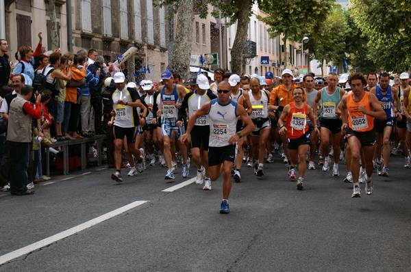 Un peu avant l’heure fatidique, tout le monde se dirige vers le départ… on tourne un peu dans Millau et on arrive sur une longue avenue. Avec mon objectif situé entre 13 et 14h (si possible plus près de 13 que de 14), pas question pour moi de partir devant… Je remonte un peu la foule des coureurs en cherchant des yeux la banderole de départ que je ne vois toujours pas. Je me dis que je me positionnerai par rapport à elle et j’avance donc au milieu des coureurs. Finalement je me retrouve dans les premières lignes du peloton et je découvre que l’arche de départ est située… 400m plus loin, après le départ ! Pas le temps de faire demi tour. Du coup au moment du départ je me retrouve dans les 200 premiers coureurs à passer la ligne. " Au premier temps de la valse,j’suis pas seul et je souris déjà, Au premier temps de la valse, Tout va bien et je m’aperçois, De Millau qui bat la mesure, Millau qui mesure mon émoi, De Millau qui bat la mesure, Me murmure murmure tout bas. "