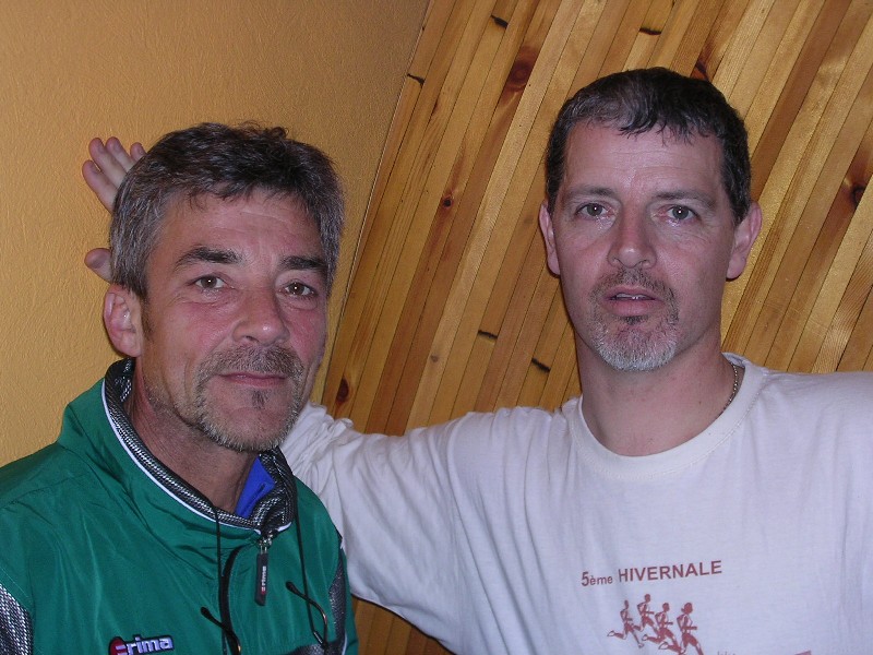 Retour au gymnase Arrivée tonitruante du corse fou avec son harem, Djorha et Koline qui va se lancer sur son premier 24h. Ca me fait drôlement plaisir de la retrouver après notre virée lors du Raid 28. Plein de souvenirs à se repasser… Les mauvaises langues diront qu'il avait même ses eunuques (paraît-il) pour garder tout ça ;-))))))Plusieurs autres arrivées pendant cette période, mais (en raison des bouteilles de vin) j’ai du mal à me rappeler ceux qui sont arrivés le soir même et ceux qui sont arrivés plus tard Fin du repas. Dehors il continue a pleuvoir comme vache qui pisse, et j’essaie de rassurer mes voisins de table du fait que l’an dernier aussi il pleuvait la veille et que le jour de la course on n’avait pas eu d’eau… La soirée approche, on déploie les sacs de couchage sur les matelas installés dans le dortoirs. Une petite toilette et hop, gros dodo… faut prendre de l’avance pour demain… Ok ! j’aurais du prévenir mes voisins qu’en se mettant à côté de moi, ils allaient entre passer les trains toute la nuit… et des diesel en plus. Demandez à Gérard et à Koline ce qu’ils en pensent ;-) Réveil sur les coups de 7h30. Dehors le temps est toujours pourri. Pluie, froid et vent !!! Ca promet. Petit déjeuner sympa, retrouvaille avec celles et ceux qui arrivent tardivement. Parmi ceux là il y a 4 étranges bestiaux. Le Gé, Le Toutou et leurs petites femmes… Gé et l’Toutou sont inscrits. Mais franchement j’ai découvert leurs noms le 3 ou le 4 avril dernier en regardant la liste des inscrits, et mon premier réflexe a été " mais qu’est-ce que c’est que cette c#nner/& ? " Ces deux là, pour les faire crapahuter en montagne il n’y a pas de soucis (l’Toutou finisher de la Maurienne et le Gé finisher de l’UTMB) mais pour ce qui est de les faire courir sur du plat, et en rond sur un circuit de 1 km, vous pouvez toujours courir… J’ai cru que c’était une bêtise suite au 1er avril, ou un truc comme ça, mais non, ils sont là, dossard en poche et prêt à en découdre… Comme me dira le toutou, " on est plus à une c#nn&r/& prêt ! "Arrivée aussi de la Bec Team ! Un jour monsieur coach et mme cours et le WE suivant c’est l’inverse… unis dans la circadie ;-) Je fais un tour de circuit pour faire des photos. Il a changé par rapport à l’an dernier. Il est plus plat, et surtout il passe juste devant la salle où nous somme installés. Cela va faciliter la logistique (surtout si il pleut) et permettre de bien gérer la stratégie de course Tiens, en parlant de stratégie ! |