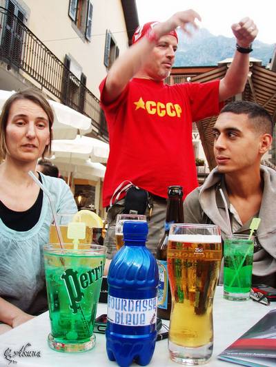 En fin de matinée je retourne sur Chamonix afin de voir quelques personnes loupées la veille puis un déjeuner en terrasse avec Bottle et Irving et une bonne grosse sieste allongé dans une pelouse bien verte… pfffff on y resterai bien …