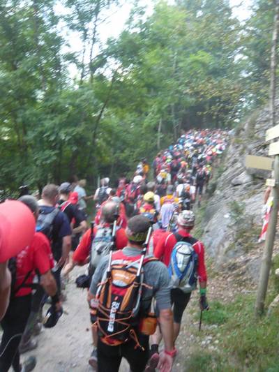 Elle se fait sur un chemin large avec des passages raides et d’autres plus accessibles. Je monte au train , tranquillement , et chose importante, cette année je ne me soucie pas des autres coureurs qui me doublent. Je gère mon allure, et je me contrefous du reste… ne pas se laisser embarquer.