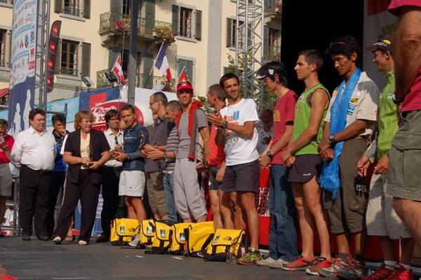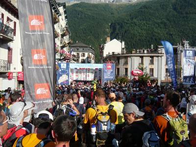 28 Août. Paris- Chamonix. J’ai profité du site de co-voiturage mis en place par les organisateurs pour descendre deux coureurs (eco-responsable le Michel ?). Arrivée sur Cham vers 13h30, déjeuner en terrasse dans le centre ville puis direction le retrait des dossards. Là commence un parcours du combattant. D’abord parce qu’il faut s’arrêter tous les 50m pour saluer quelqu’un (c’est dingue le nombre de personnes qu’on fini par connaître dans ces rassemblements) et ensuite parce qu’il y a une jolie queue pour retirer les dossards… En fait on croyait faire la queue (on a commencé l’attente juste à l’entrée de la tente) mais on verra par la suite qu’on a eu beaucoup de chance certains ayant du attendre plus de 2 heures pour retirer le précieux sésame (une petite demi-heure pour nous)