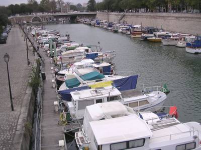 Le Pont Marie nous fait passer sur la rive droite, ( voir la carte n°3) et on s’offre un plaisir possible qu’en cette heure matinale (mais ô combien interdit) en traversant la voie expresse pour atteindre une promenade piétonne en bordure de seine. Cette promenade nous permet d’aller jusqu’au Port de l’Arsenal, seul port de tourisme de Paris avec une vue sur la colonne de Juillet de la Place de la Bastille.