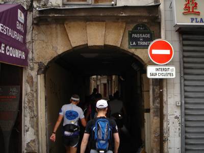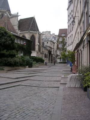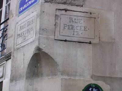 Le XIIème arrondissement va nous offrir des jolis Cours privés comme le Cours de l’étoile d’or ou le Cours de l’ours et quelques ruelles comme le passage du Chantier. Ensuite ce sera la rue le Lappe et ses resto dancing. Déserte à cette heure-ci, elle aurait été infranchissable en fin de soirée. On coupe le Bd Richard Lenoir pour retourner dans le 4ème. Un tour sous les arcades de la Place des Vosges nous permet ensuite de traverser le Village St Paul, petit labyrinthe de cours intérieures où sont installés brocanteurs et antiquaires. Les points particuliers se succèdent avec l’Hotel de Sens, les vieilles plaques de rues gravées dans la pierre au niveau de la Rue du Prévot