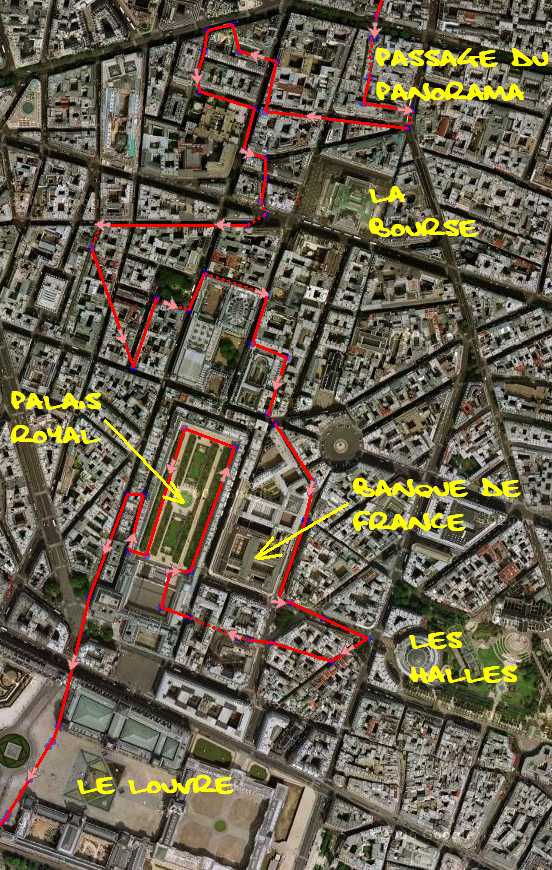 On passe plusieurs petites rues pavées pour la rue Lafayette puis on enchaîne directement le passage Verdeau, le passage Jouffroy et le passage du Panorama (voir la carte n° 9).