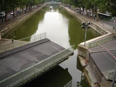 Même si la boucle autour des Buttes Chaumont a été supprimée, pas question de passer à côté d’un point de vue original, qui plus est, peu fréquenté par les touristes. Nous remontons donc le Canal St Martin,