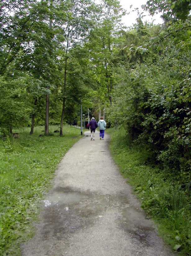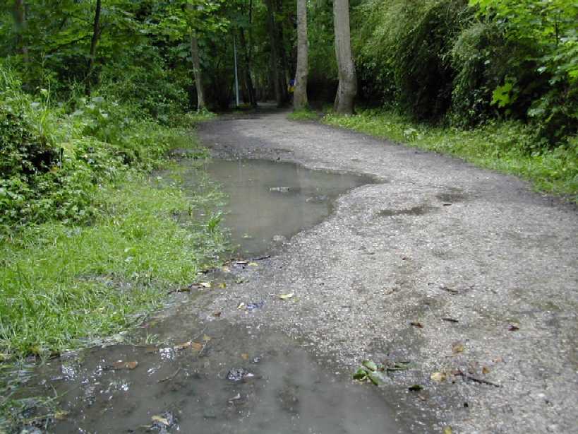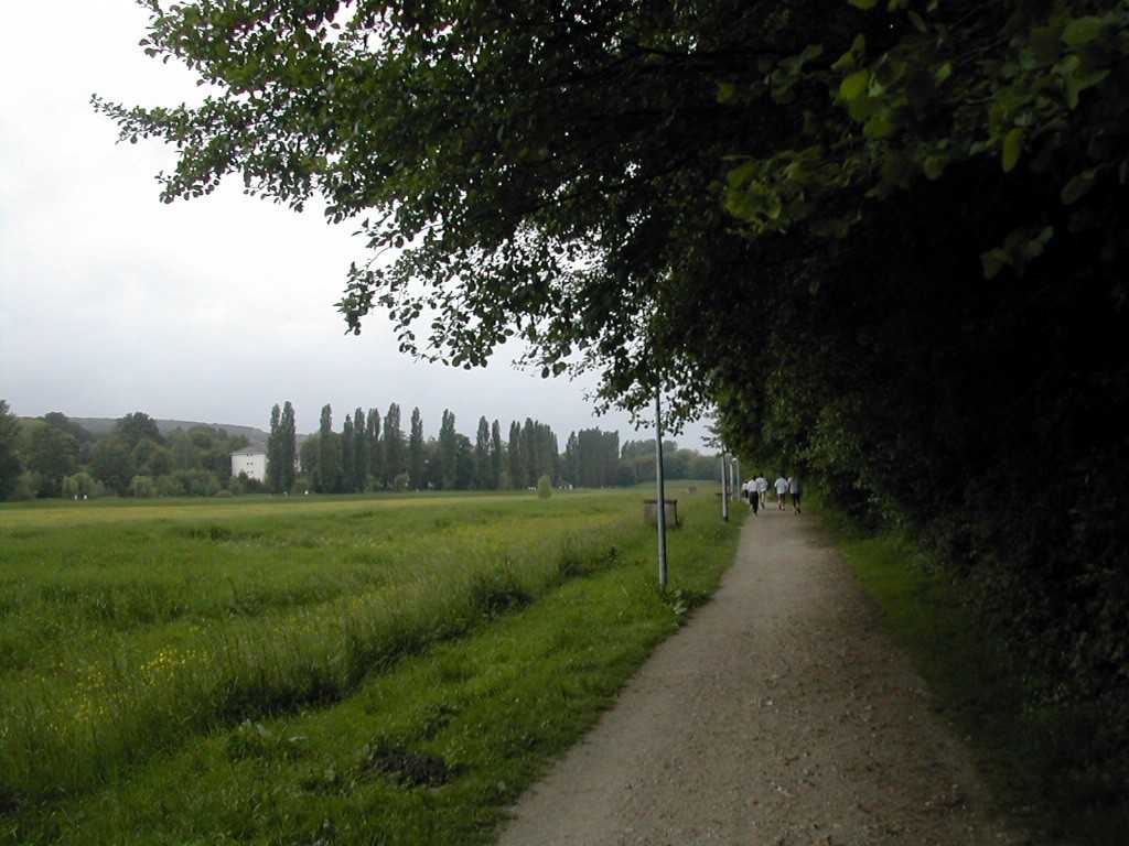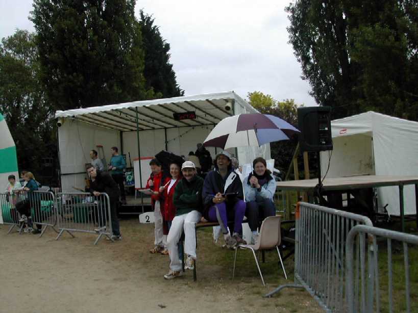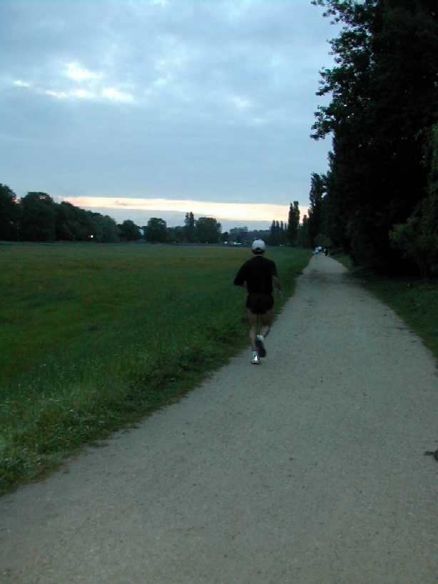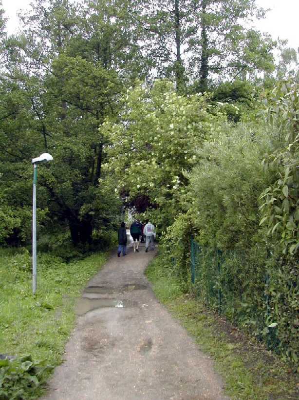 Un virage à angle droit à droite suivi de la " descente " du circuit (au moins 8 m de long), un tournant en épingle qui ramène au bord du bassin, puis un nouveau tournant pour revenir dans l'axe du bassin. C'est le seul endroit du circuit où l'on peut se sentir aller vite. Mais, attention à la chute ! Notre grande Monique s'y est abîmée l'épaule. Le tournant de l'épingle, souvent traversé par un ruisseau, est boueux. Les quelques cailloux du chemin annoncent ceux qui suivent. Le chemin le long du bois Le chemin longe le bois avant de s'y enfoncer. Le passage libre est étroit en raison des basses branches qui occupent largement le côté droit du chemin. Des cailloux dépassent du sable dur pour faire trébucher les coureurs épuisés. Plein de monde à pied ou à vélo affectionnent l'endroit. Il est donc difficile à franchir. De plus, de tout le circuit, c'est là que le vent d'ouest souffle le plus fort dans le nez des coureurs. On s'autorise juste un coup d'œil de l'autre coté du bassin pour essayer d'y deviner la progression des amis.La côte La "côte", (au moins 6 m de long et 2 m de dénivelé) est à l'entrée du bois. Il faut la respecter. Pendant les premières heures, les brutes dont j'étais aussi il y a quelques années, franchissent l'obstacle sans ralentir. Mais la "côte" a la rancune tenace. Elle use peu à peu pour obliger les irrespectueux du matin à marcher l'après-midi. L'obstacle franchi, on entre dans la forêt sombre. Il y fait toujours froid même par grand soleil. Les cailloux du chemin sont remplacés par de la terre noire et humide. Des pistes serpentent au milieu des arbres. Là aussi, il est difficile de contourner les gens et les troncs d'arbres. Le 28 mai 1999, la tornade s'est abattue sur la course. Un des grands arbres de cette partie du bois s'est couché sur le chemin. Dieu merci, aucun coureur ne se trouvait là. Avec deux jeunes filles, je tentais alors de me protéger de la grêle à 50 m de cet endroit.Le tournant de la chute Un petit pont de bois enjambe un ru descendant des hauteurs de la vallée. Ses planches de bois qui ne connaissent pas le soleil sont couvertes d'une fine mousse brune qui devient terriblement glissante dès qu'il pleut. Il faut tourner sec à gauche à la sortie du pont, si on commence le tournant sur les planches, au mieux c'est le grand écart, au pire c'est le plat ventre. La seule technique sûre est alors d'aller tourner plus loin sur le chemin de Gif. Au premier tour, dans la grisaille du petit matin, on a vu des gens rater le tournant et s'égarer du côté de Gif. La rizière et le tournant de la boue Le bois s'éclaircit. Le chemin se sépare en plusieurs sentes serpentant dans les hautes herbes grasses. Le sol est noir, humide et terreux. Attention, un chicot de bois se cache au milieu de la piste de droite pour nous faire chuter ! En sortant du bois, on prend à gauche, à angle droit, le dernier tournant bien marqué avant la ligne d'arrivée qu'on devine fugitivement, loin là-bas sous l'arc de triomphe. Le chemin s'élargit soudain et le sol redevient clair. Mais à la moindre pluie, que de boue profonde ! Il faut aller chercher le passage le moins glissant loin sur les bords. Il reste quasiment un kilomètre pour terminer le tour du bassin. Le chemin large et confortable est bordé à droite par les grands peupliers poussant le long de la rivière et à gauche par le talus qui, après le pont du déversoir, domine le bassin. Qu'il est long, qu'il est long ce chemin papa ! Heureusement le sol sans piège nous laisse tout le loisir de regarder les amis qui courent en face le long du bois. Des points de repère (lampadaires ou gros arbres) permettent de surveiller l'allure de nos adversaires. Claude est facile à repérer, c'est le gars à la casquette blanche qui avance plus vite que tout le monde.Tellement longtemps après avoir entamé la route de l'infini qu'on en a oublié le début et qu'on n'en imagine plus la fin, l'arc est là tout près. On entend à nouveau les mots d'encouragement de la sono de Patrick et on voit les chiffres rouges de la pendule égrainant les innombrables secondes du temps qui reste à courir.La tribune du contrôleur qui enregistre tous les passages est montée à côté de l'arc. Tel le capitaine à la barre du navire, le contrôleur domine le flot montant des coureurs qui s'écoule lentement en battant les flancs de sa tribune. Encore un tour de couru, combien en reste-t-il à faire d'ici ce soir ? 10, 20 30 ou 50 ? |