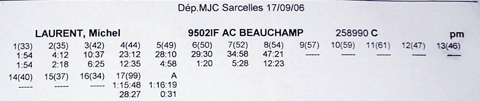 Une semaine avant les 100km de Millau j'avais prévu une heure de footing. La présence de cette départementale organisée par le club de Sarcelle me donne l'occasion d'une sortie plus ludique, même si ma gestion pas top de l'épreuve me pousse à écourter le circuit afin de rester dans un temps de course acceptable... Bref y'a du boulot à faire pour reprendre les CO de façon efficaces Comme d’habitude, vous pouvez accéder à mon CR de la course, ainsi qu’aux définitions de postes, à la carte et aux résultatsBonne lecture |