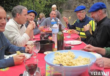 Là la Tortue il nous a mis en confiance. Les femmes d'un côté, les hommes de l'autres et il nous a fait boire m'sieur l'commissaire… manger aussi un peu, mais boire surtout.