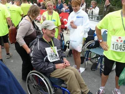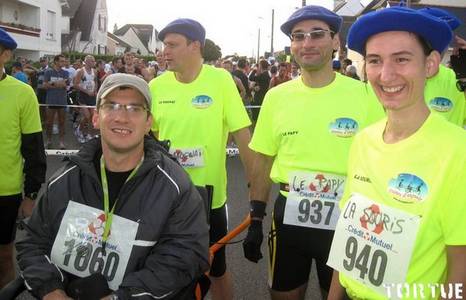 En tendant l'oreille j'ai compris que c'était pour lui les 11 paires de jambes. Bon, je sais pas où ils comptaient les mettre ces 22 jambes parce que le Joëlette c'est pas bien grand, mais en tout cas tout les acteurs étaient réunis.
