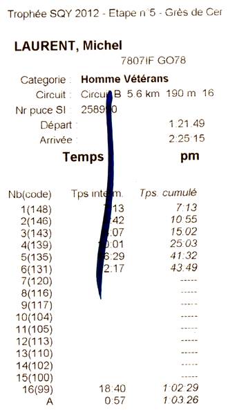 Vous pouvez retrouver la définition des postes, la carte avec mon tracé, ainsi que mon résultat et les résultats finaux du trophée. |