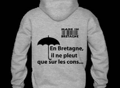 Dès qu'on parle pluie on parle Bretagne, et les bretons ça les agace un poil visiblement, d'où le célèbre "En Bretagne il ne pleut que sur les cons..."