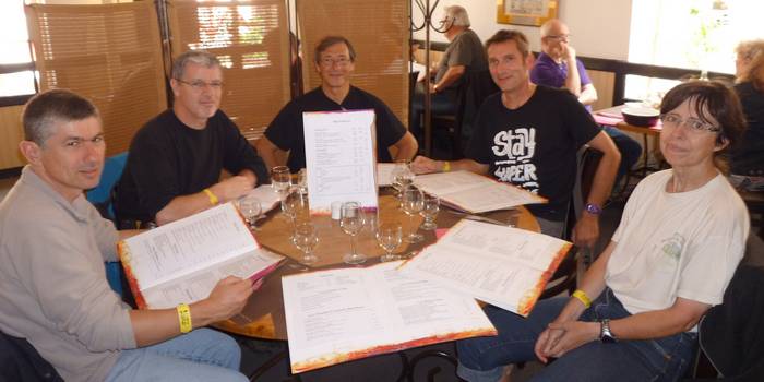 Vers midi, je retrouve Hervé pour aller rejoindre le resto qu'il a réservé. Comme c'est un peu le local de notre groupe, on le laisse nous guider... Bon l'avantage c'est que du coup on a bien pu visiter le centre ville... On retrouve Insomniac trailer, Mico et son mari ainsi que Berrurier.