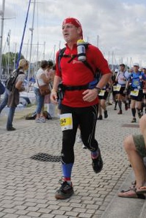 Alors que j'en bave comme un turc, voilà qu'on nous indique qu'il va y avoir un dernier pointage. Sauf qu'avant ça, on nous fait faire tout le tour de l'ile de Conleau, et qu'en arrivant enfin au pointage je râle comme un bossu sur ces foutus kilomètres de bitume qui n'avancent pas... J'espère que les bénévoles de point de contrôle ne m'en voudront pas trop... je n'étais pas vraiment dans mon état normal...