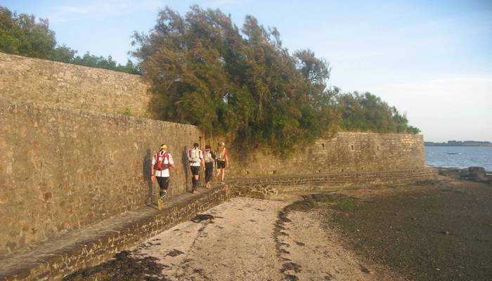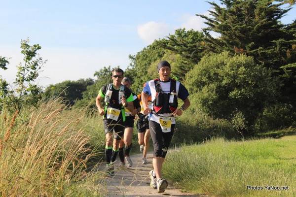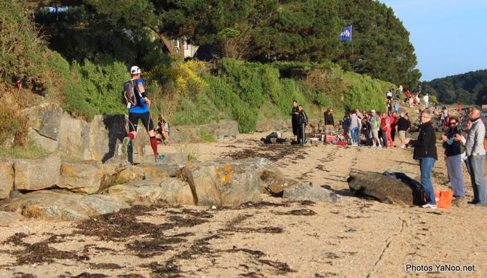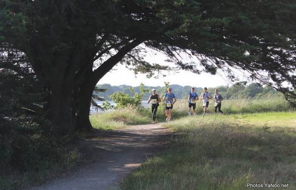 Sur la seconde partie du parcours je fais la route avec un coureur du coin qui m'explique chaque lieu où on passe. Juste après un petit cap, on voit Port Navalo et l'embarcadère juste en face de nous. Cool... Mais mon équipier me dit de ne pas m'enflammer trop vite, on est à quelques centaines de mètres de l'embarcadère mais on a encore une boucle à aller faire de l'autre côté pour revenir par le sentier côtier côté océan... et m.... !