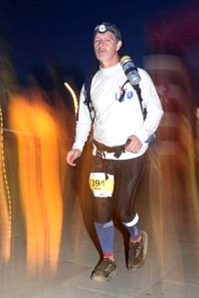 154 km de fait. La nuit est bien tombée et j'ai revissé la frontale sur la tête. Je fais ma pause ravito comme les autres mais sans trop trainer. J'ai mal partout et je n'ai qu'une envie c'est d'en finir. Ca fait un moment que je trouve ça long (en fait je me suis dit dès le 30ème kilomètre que ça allait être long, très long...).