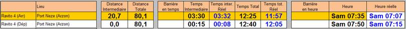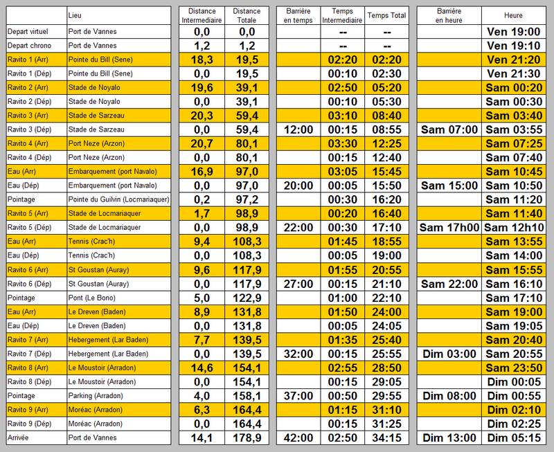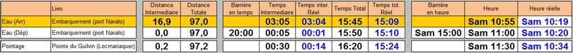 Une fois au port, on va enfin pouvoir passer cette foutue arche, la vraie de vraie cette fois. Du coup il a fallu que je décale tous mes temps de repères de 10mn (mais pas mes temps de passage parce que eux étaient basés sur le temps de la puce) , et toutes mes distances de 1,2km...