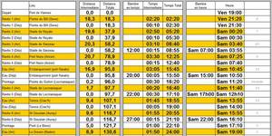 Les chiffres en noir correspondent aux heures prévues, et ceux en bleu aux heures réelles