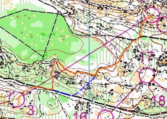 J'ai pu mettre en application ce que j'avais travaillé un peu avant lors de l'entrainement club avec une carte "sans chemin" et franchement ça m'a été bien utilise pour m'obliger à lire le terrain.