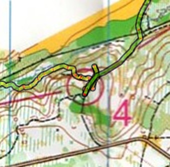A partir de là on progresse correctement, comptant les rentrant pour faire notre remontée vers le poste au bon moment. La montée se passe bien et en arrvant en haut on voit une balise mais que j'identifie comme étant sur un chemin. Du coup je dis à Jay qui voulait aller la voir que ça ne doit pas être la bonne et on continue a remonter jusqu'à une intersection de chemins. Là on va grenouiller un peu car on est monté rapidement et qu'on a perdu nos points de repère (la chose à ne pas faire). Du coup on commence a chercher, mais sans être trop sûr de notre coup.