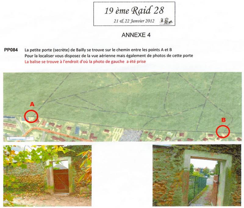 PP083 sur une jonction de chemins, puis on a encore une spéciale sous forme d'une photo. La balise est au niveau d'une porte percée dans un mur. La section où peut se trouver la porte est assez large. Je me doute bien qu'elle doit être vers la fin, mais par sécurité on aborde cette section par une des extrémités... Evidemment, pas la bonne. On remonte tout le mur jusqu'à la porte magique.