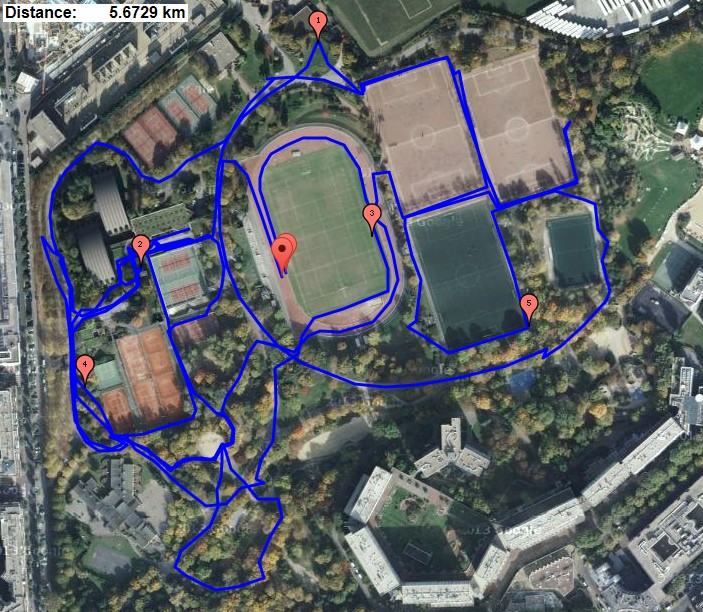 Jolie petite trace globale sur le parc. Au total 5,67km au lieu des 4,4 annoncés (le ratio des 1,3 est respecté)