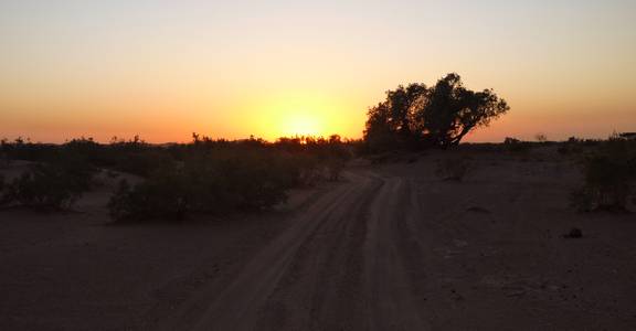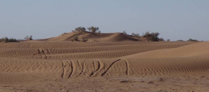 Alors que je termine de me préparer, Juju et Gérard arrivent ! Grand moment de plaisir de les voir débarquer ici. Vu l'état de Juju quand je suis parti de CP13, j'étais assez inquiet sur sa capacité à repartir, mais visiblement le passage des PAM a fait de l'effet. Par contre, ils se sont fait la traversée du plateau en pleine chaleur et cette fois ci c'est Gérard qui est explosé. On discute avec Juju lorsque je me rend compte que Gérard s'est déjà endormi sur un matelas à l'ombre. De toutes façons ils veulent prendre le temps de se reposer avant d'attaquer la prochaine section et repartir avec la fraicheur du soir. Du coup je décide de ne pas les attendre. non pas que je ne veuille pas rester avec eux (j'avais même parlé à Gérard du fait qu'on puisse finir tous les 3 ensembles vu le chemin que nous avions parcouru), mais là, j'ai un peu hâte d'en finir et j'ai vraiment envie de bouger après mon arrêt prolonger. Je salue Juju, lui dit de faire la bise à Gérard quand il se réveillera et je pars sur la piste, par le même chemin qu'en arrivant. C'est marrant mais le fait de les savoir ici me redonne un coup de booster... De CP14 à CP15 Départ de CP14 Jeudi à 14h50 après une pause de 1h45 (78h40 depuis le départ) Je repars par la même piste que celle par laquelle je suis venu. Pour gagner de la distance je décide de biaiser un peu pour longer les dunes au plus près, et on ne sait jamais, si je trouve une piste... Jes fais environ 1,5 km à contre sens quand je me rend compte que les dunes ont beaucoup perdu en densité et en taille. Comme je devine la fin de la zone de dunes plus loin, je décide de me risquer à couper.