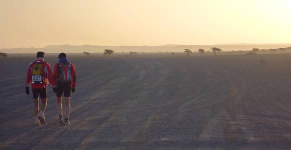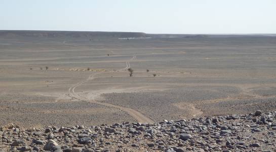 Arrivée à CP13 Jeudi à 06h55 - 5h35 de course sur la section, et 70h45 depuis le départ - Temps estimé initialement 6h15 - 7ème position. (Juju et Gérard sont repassés devant) Je me rend vers la tente du CP, et là j'y retrouve Gérard et Juju. Sauf que Gérard a la mine un peu déconfite. Juju est allongé sur un matelas, complètement emmitouflé en train de dormir. Gérard m'explique qu'il souffre de plus en plus, et qu'il a énormément galéré pour arriver jusqu'ici cette nuit. Je m'installe à l'extérieur de la tente pour laisser Juju dormir, je me ravitaille et Gérard me dit qu'ils ont mis près de 7h00 pour arriver ici et que depuis, il n'arrive pas à joindre les PAM du fait qu'il n'y a pas de réseau sur ce CP. De plus personne n'est passé en 4x4 depuis qu'ils sont ici. C'est vrai que le PC est dans une cuvette et que l'arrêt de l’émetteur qui couvre la zone n'aide pas vraiment. Du coup je décide d'écouter ma pause et j'indique à Gérard que dès que je sors de la cuvette j'essayerai de les contacter. on ne sait jamais, il y a peut être une chance que j'arrive à capter un peu de réseau quelque part. De CP13 à CP14 Départ de CP13 Jeudi à 07h34 après une pause de 0h39 (71h24 depuis le départ) la pause la plus rapide de tous les participants à ce CP... Je pars par la piste, un peu perturbé par l'état de Juju, et probablement par l'inquiétude que j'ai pu lire sur le visage de Gérard. Je me dépêche de grimper la piste qui monte hors de la cuvette et je me retrouve sur le plateau. Là je branche le portable, mais aucun signal. Malgré le fait que je n'ai plus de chargeur (lui aussi est dans mon sac à dos), vu que j'approche de la fin de course, je décide de laisser le portable allumé au cas où, à un moment, j'arriverais à attraper un peu de réseau. Une fois en haut, s'affiche devant moi une longue et morne plaine caillouteuse sans rien d'autre qu'un enchevêtrement de pistes à 4x4... Pas d'ombre, pas de végétation, pas de jolis décors, juste un plateau "de la mort qui tue", surtout quand on a déjà 270 bornes dans les jambes...