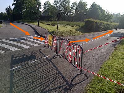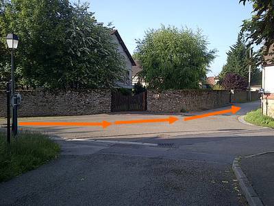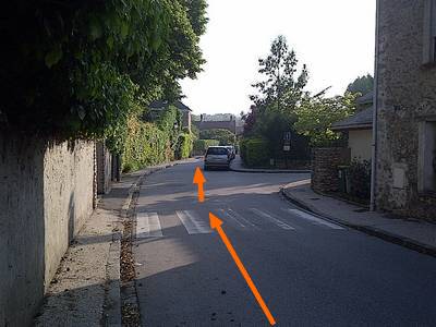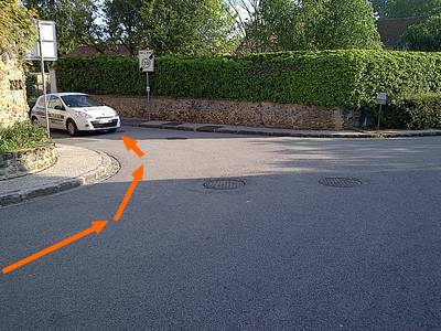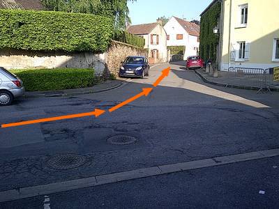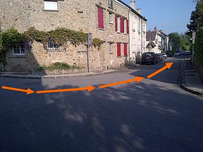 Repère 4, Arrivé au bout de la rue, on fait un virage à gauche à 90° (en essayant d'éviter la voiture...)
