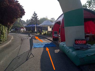 Au bout du faux plat on arrive à l'arche et à la tente de chronométrage